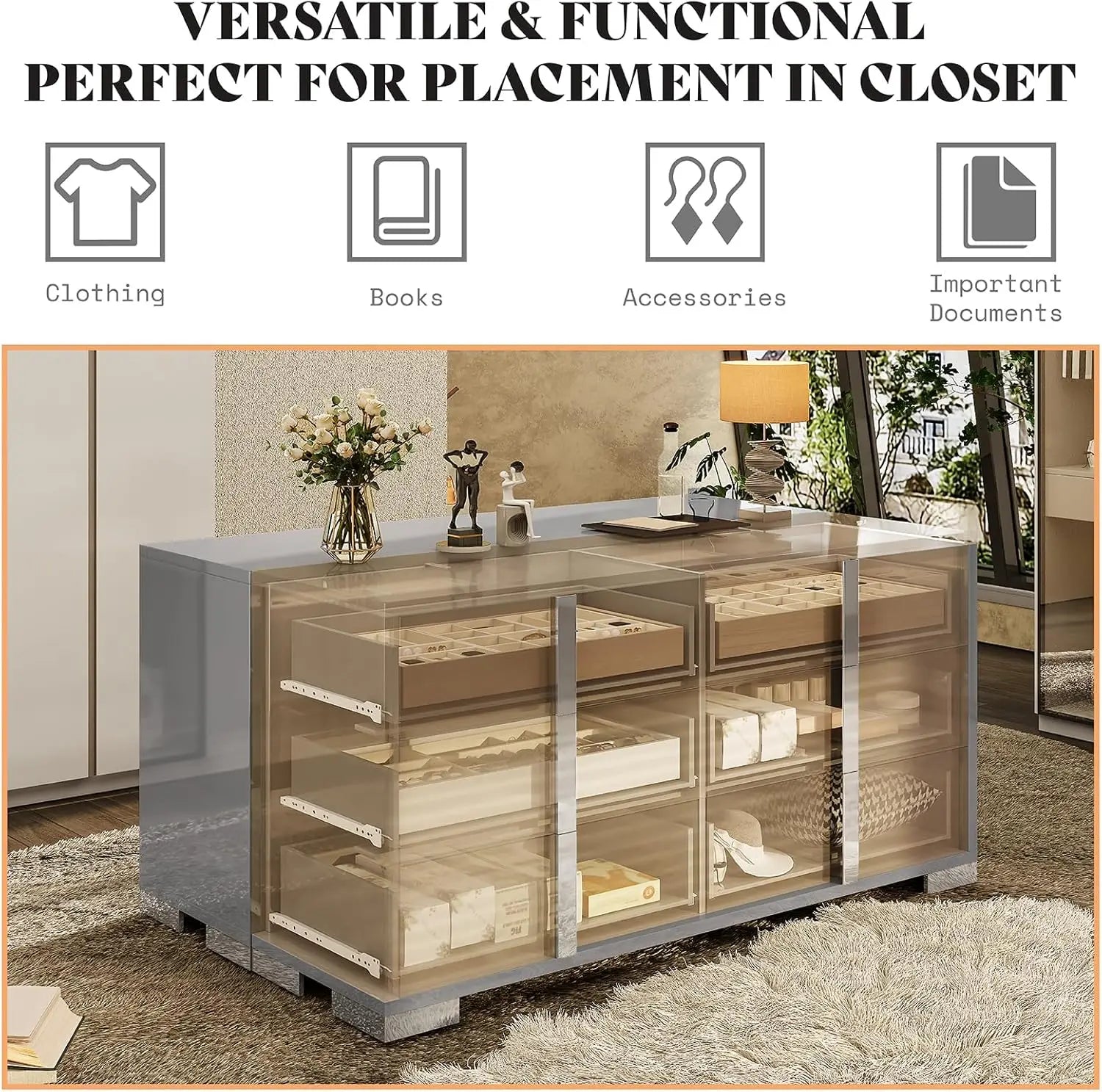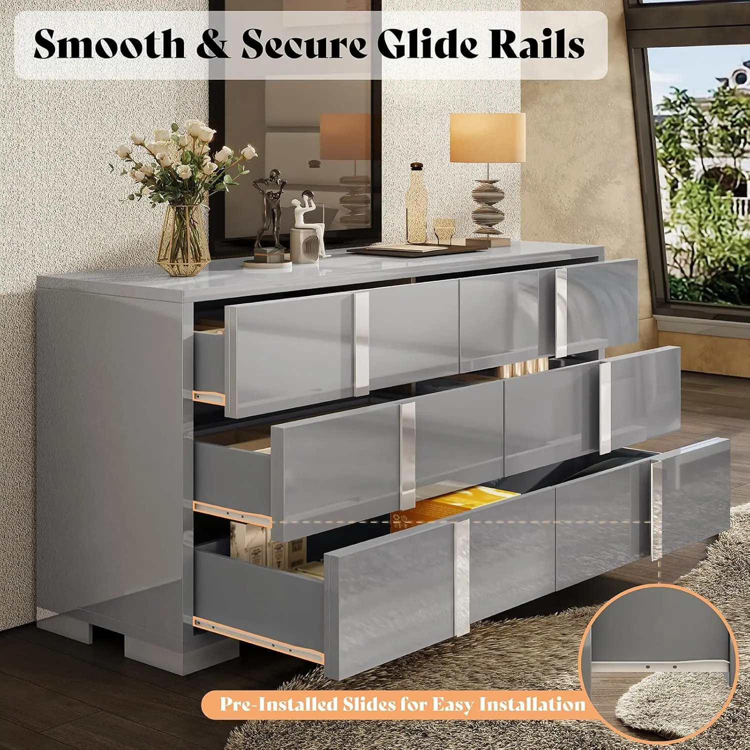 - [Modern High Gloss] 6 Drawers Dressers boast high gloss surface with silver grooved handles and unique cabinet feet, adding depth and texture to its appearance. Easy to clean and maintain for a lasting shine