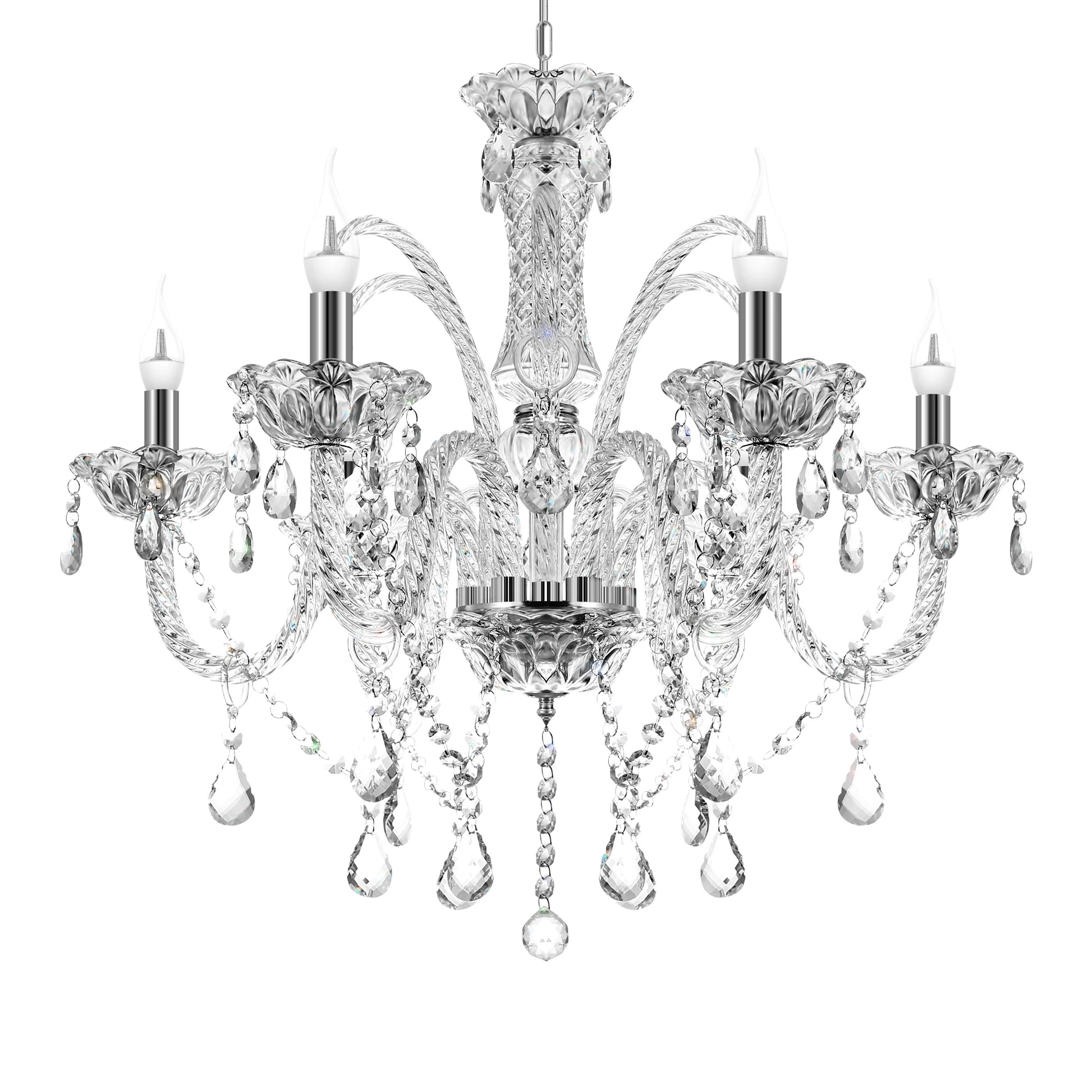 - Six E14/E12 bulbs (bulbs not included) illuminate a 5–10 square meter area with clear, shimmering light.