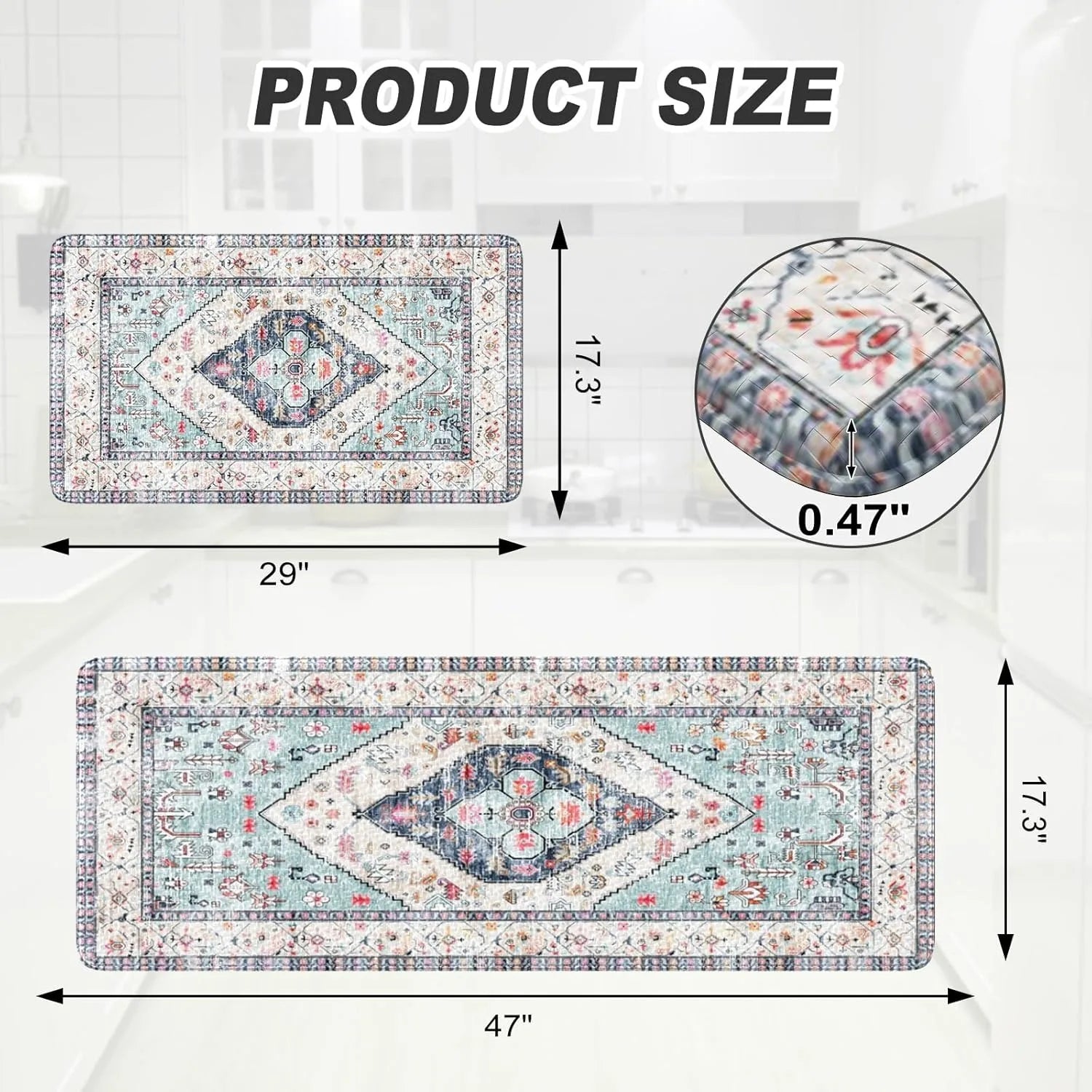 - Kitchen Rugs Set 2PC: The set contains 2 rectangular kitchen mats measure 17.3"x 47"+17.3"x 29".The comfort standing mat are made of high-quality and premium PVC materials,to ensure that the mats will keep their shape, even with extended and long-term heavy duty use