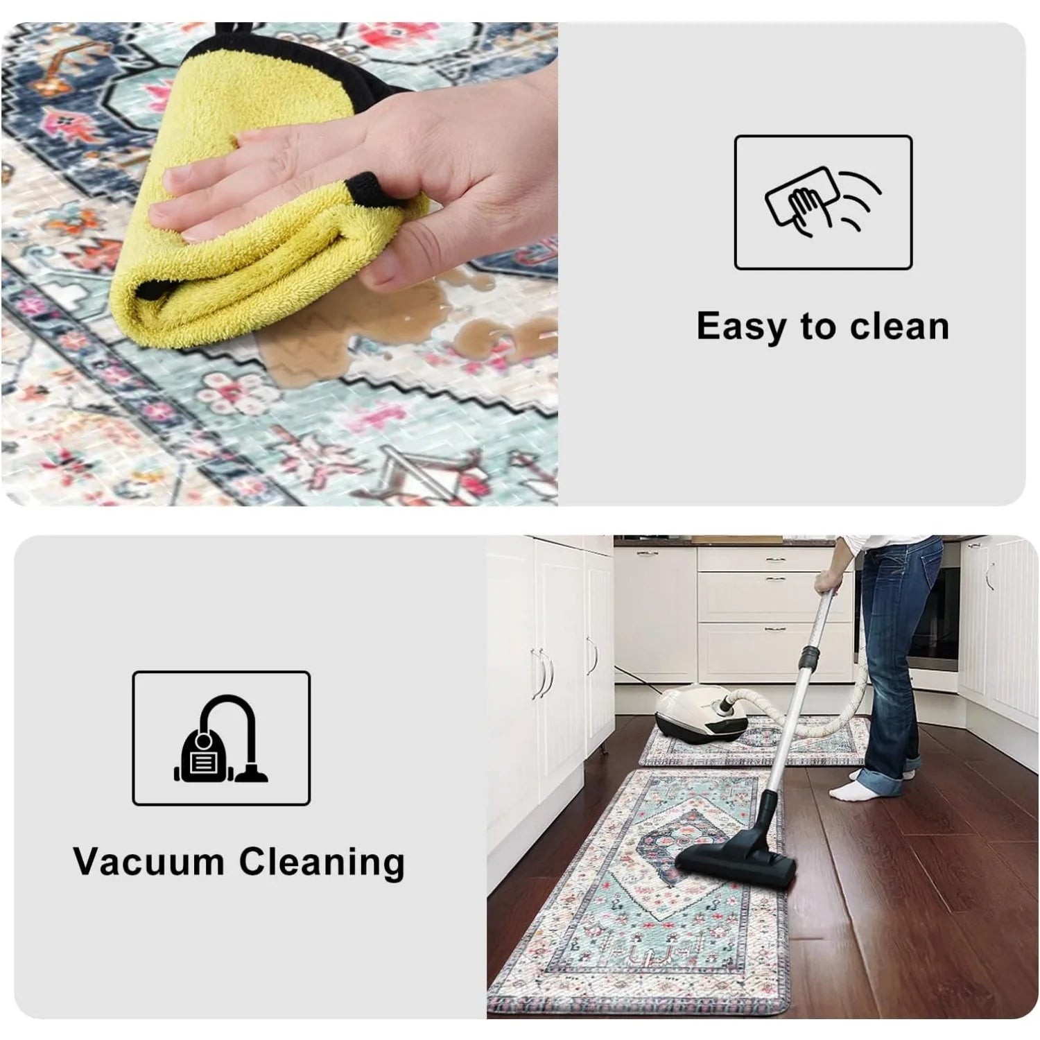 - Easy Clean & Waterproof:The soft kitchen rugs is stain resistant,waterproof and easily cleaned.Simply wipe the floor mat with a damp cloth or sponge or use a hand-held vacuum as needed,save your time and energy