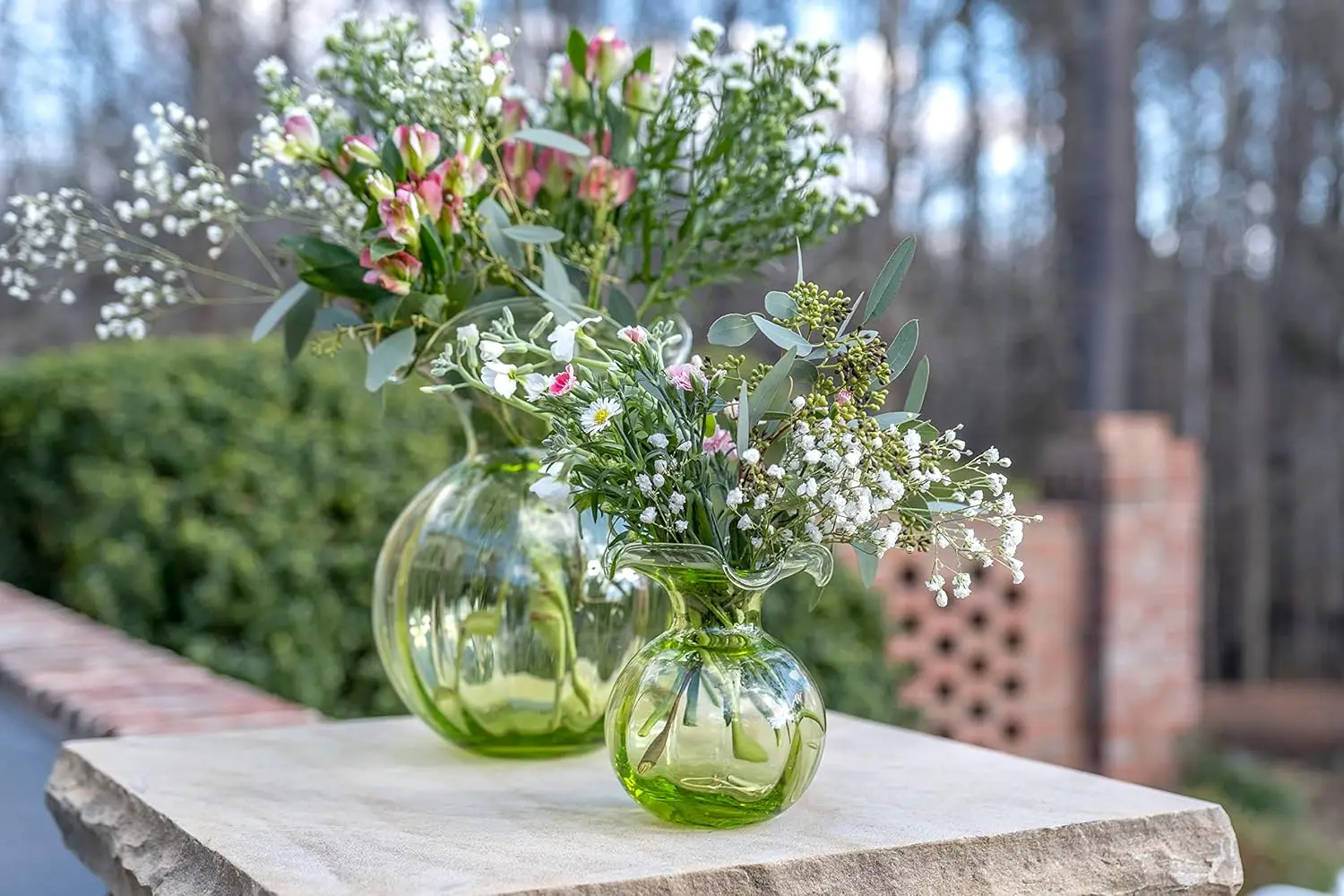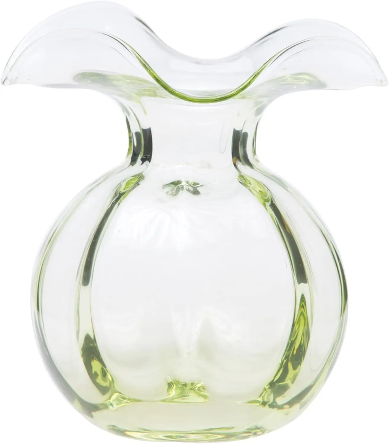 Hibiscus Glass Green Medium Fluted Vase 9" D, 10" H, 96 oz Glass Flower Vase, Living RoomDecor