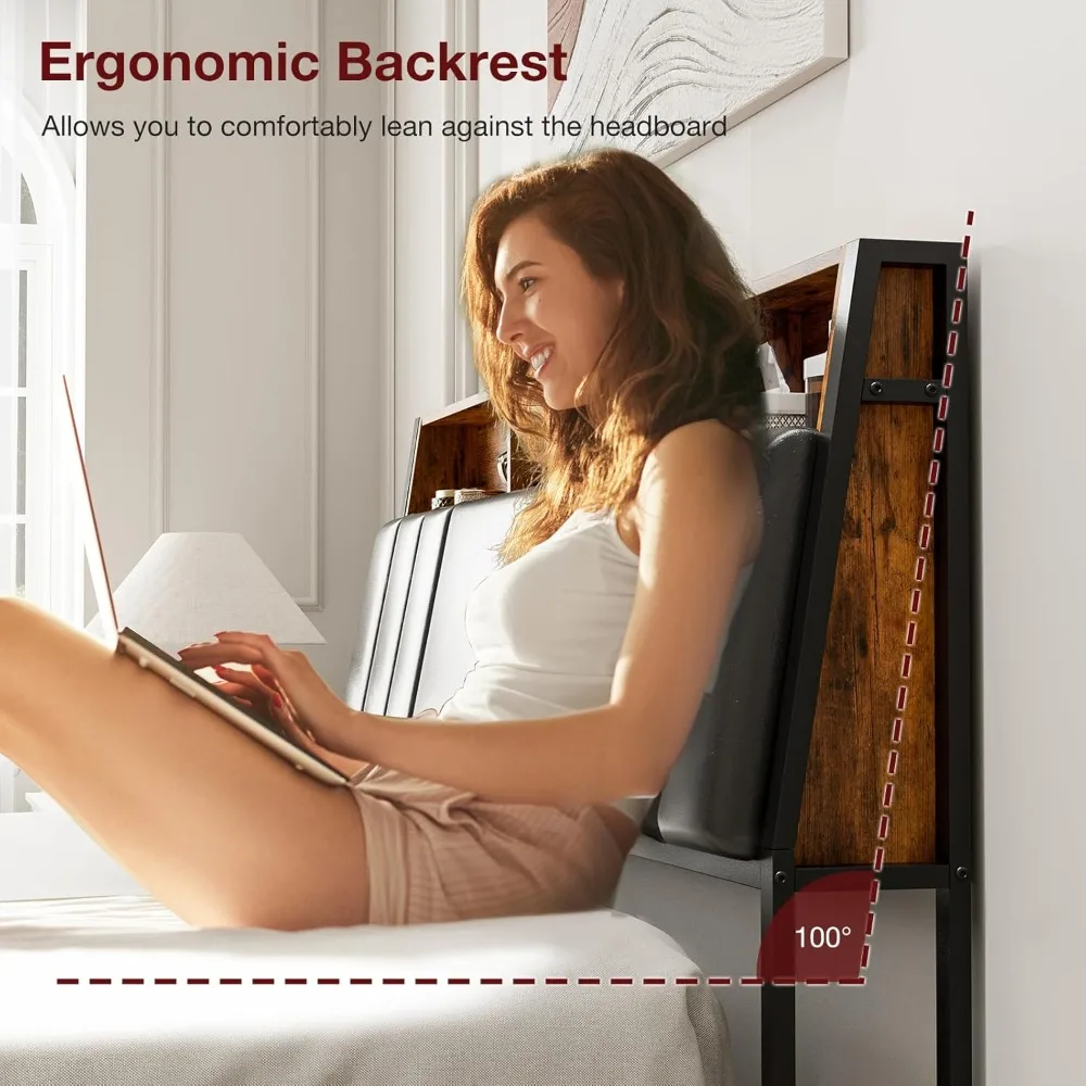 - Stylish & Ergonomic Headboard : Along with rustic brown storage shelf and classic upholstered stitching design, easily blend with any home décor. An ergonomic 100° tilt makes the headboard comfortable to recline on while leaning on the bed, effectively relieves back stress