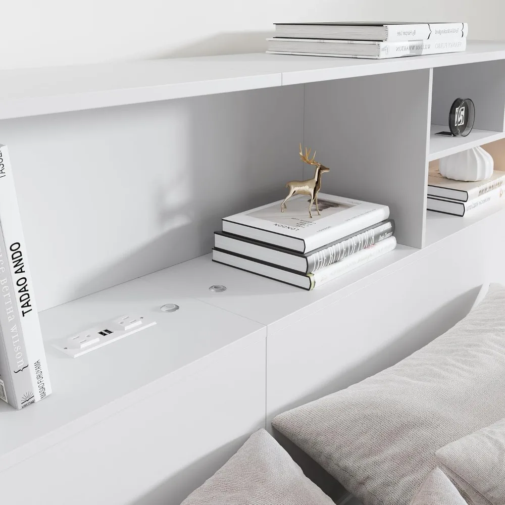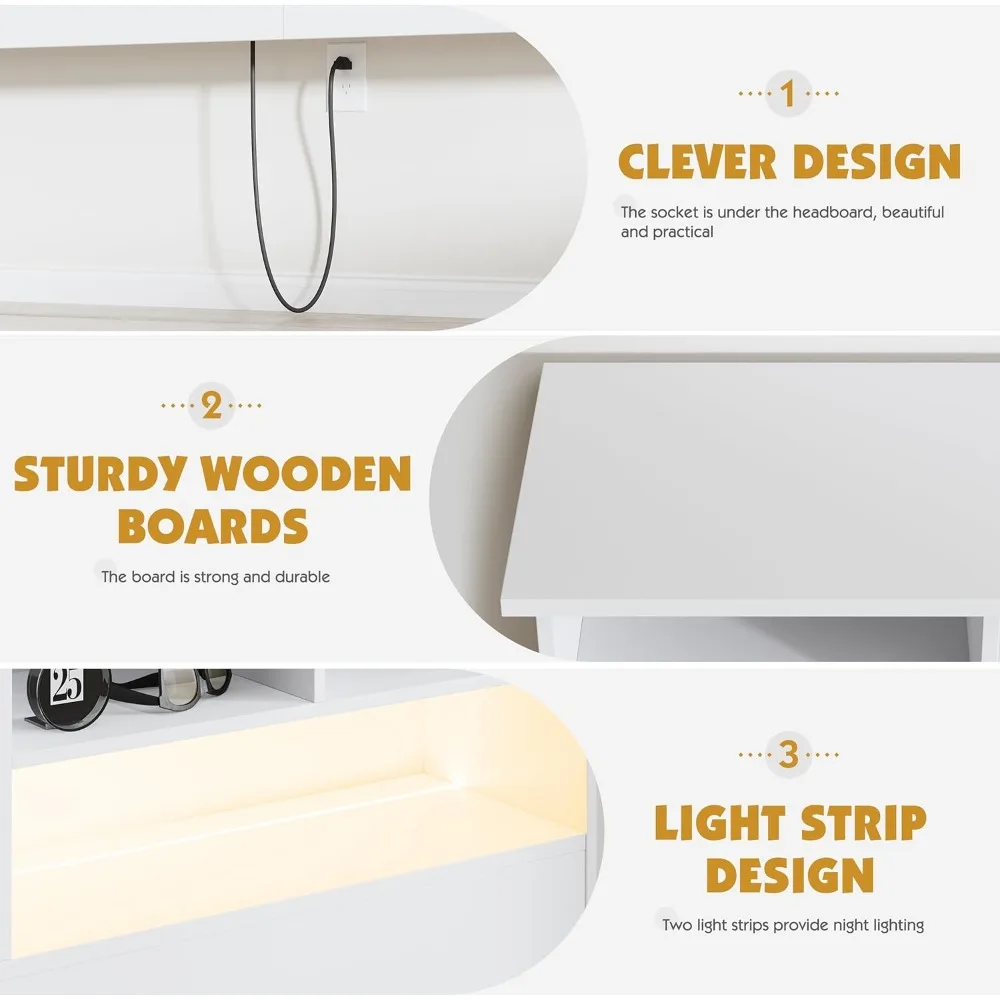 - 2 LED Lights-THE bookcase headboard with 2 LED lights, catering to your nighttime lighting needs. The industrial-style wooden storage headboard, combined with modern LED lights, adds a vibrant touch to your room.