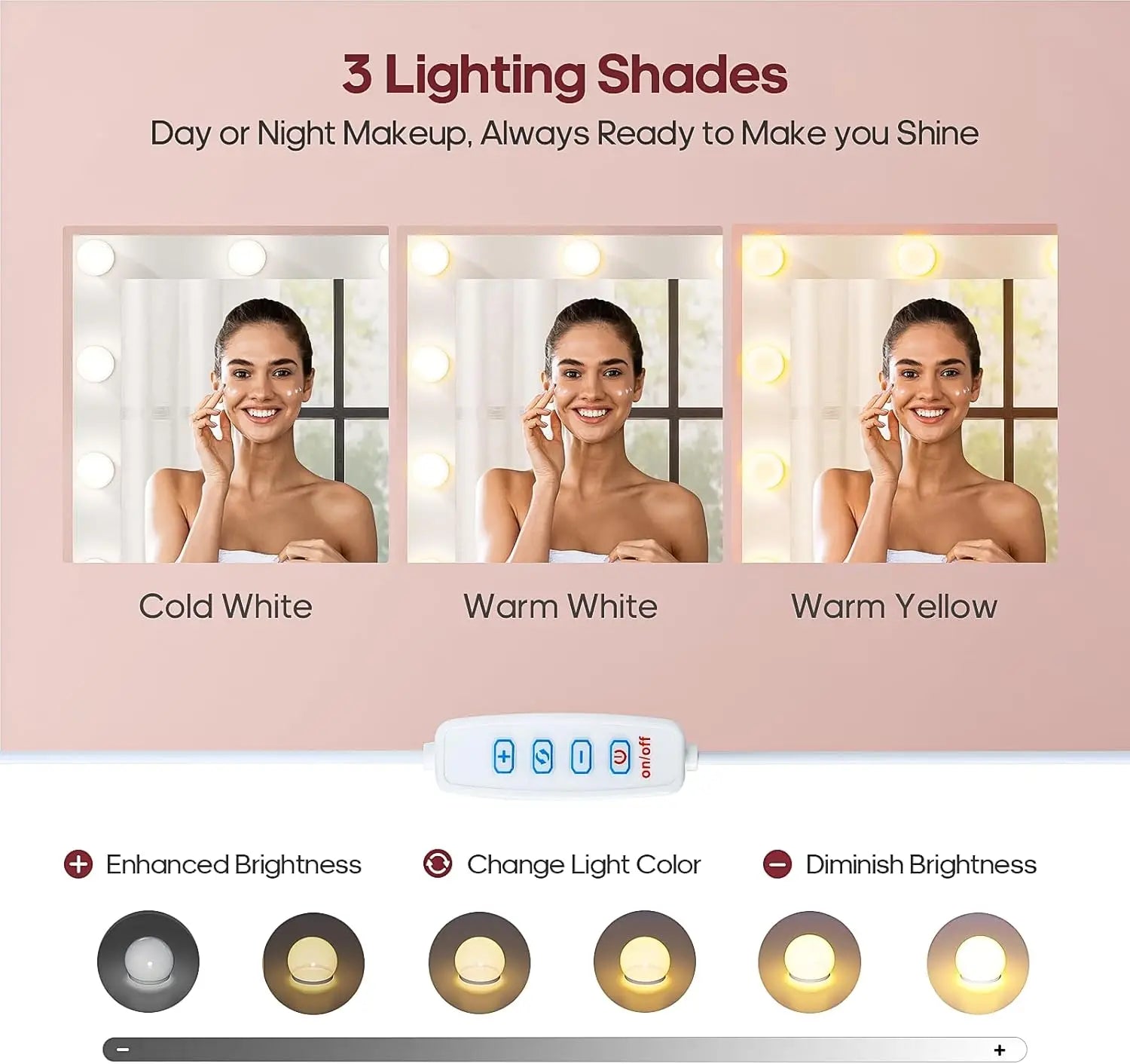 - You enjoy an extra-large mirror with 3 color modes and adjustable brightness so you can apply makeup precisely in any lighting.