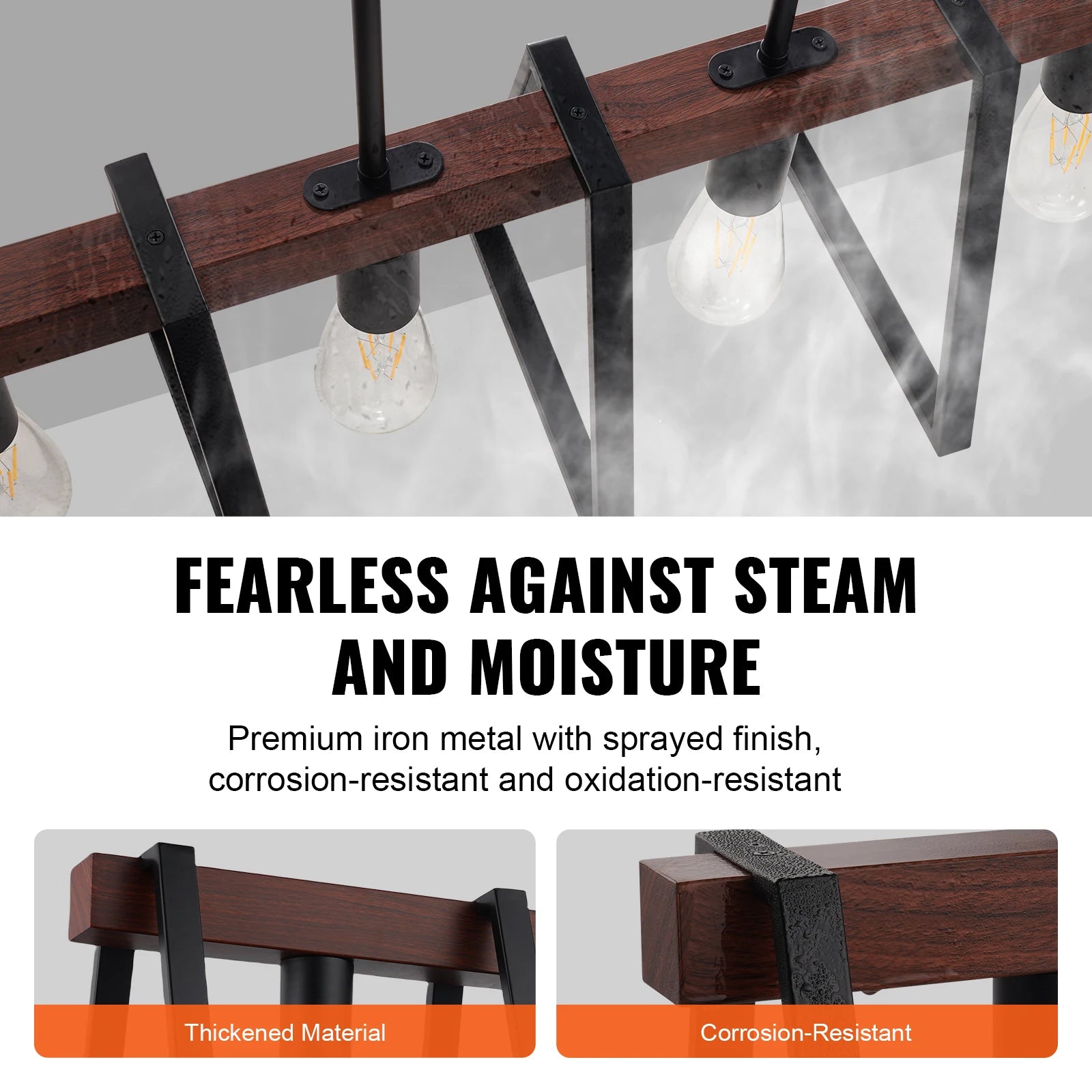 - Exceptional Durability, Built to Last: Crafted from durable metal, our chandeliers for dining room features a stable structure that ensures long-lasting performance. The walnut wood grain seamlessly blends with the black iron frame, offering a rustic yet elegant touch to your interior decor. Resist fading and corrosion, it adds enduring charm and sophistication to any space.