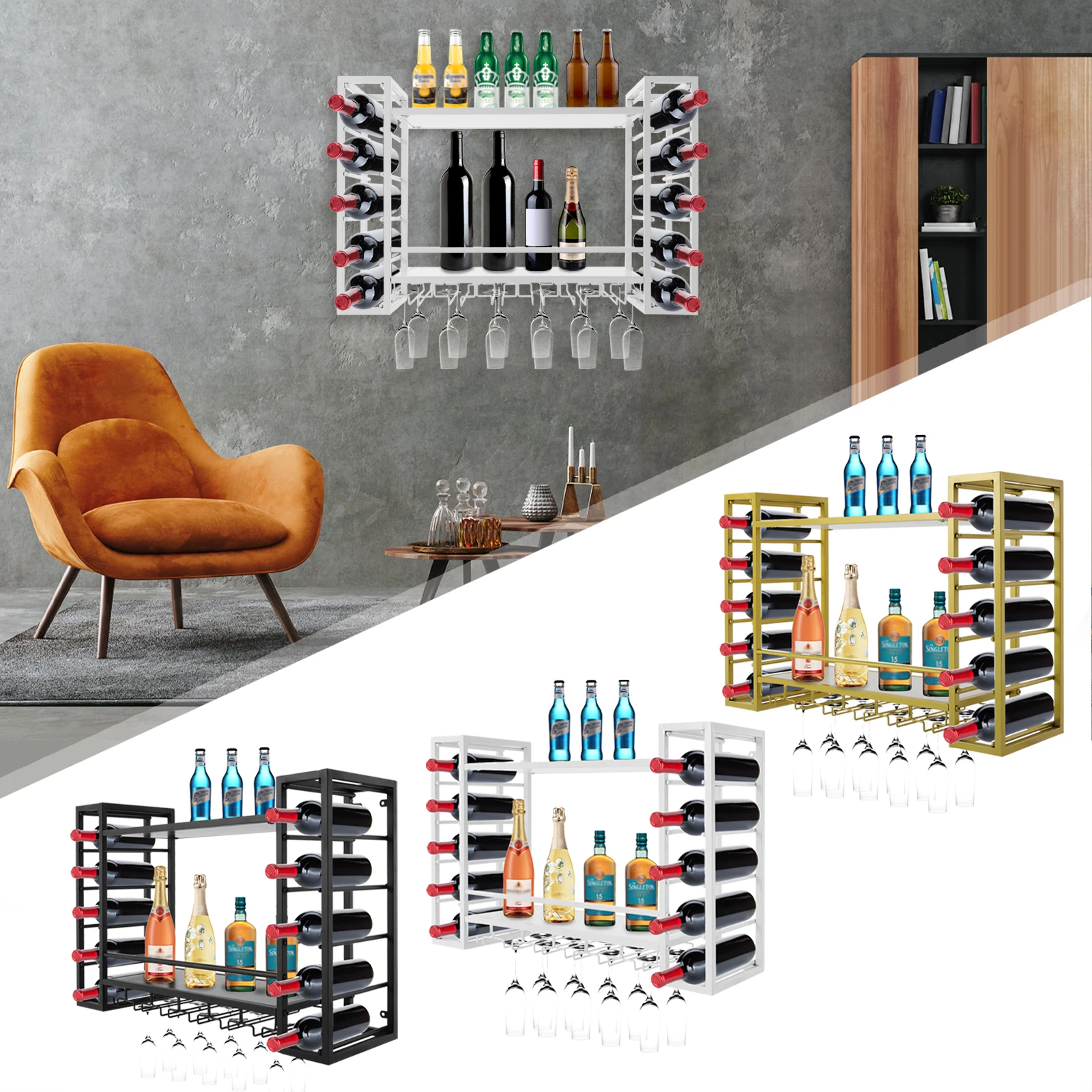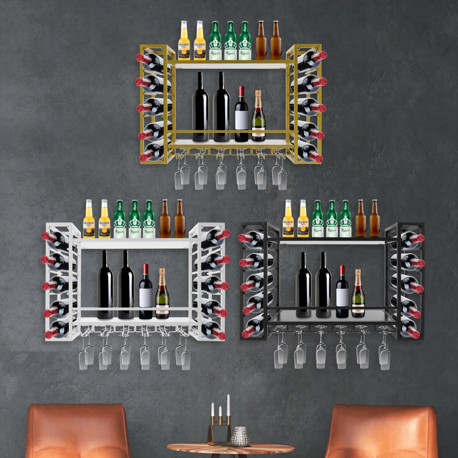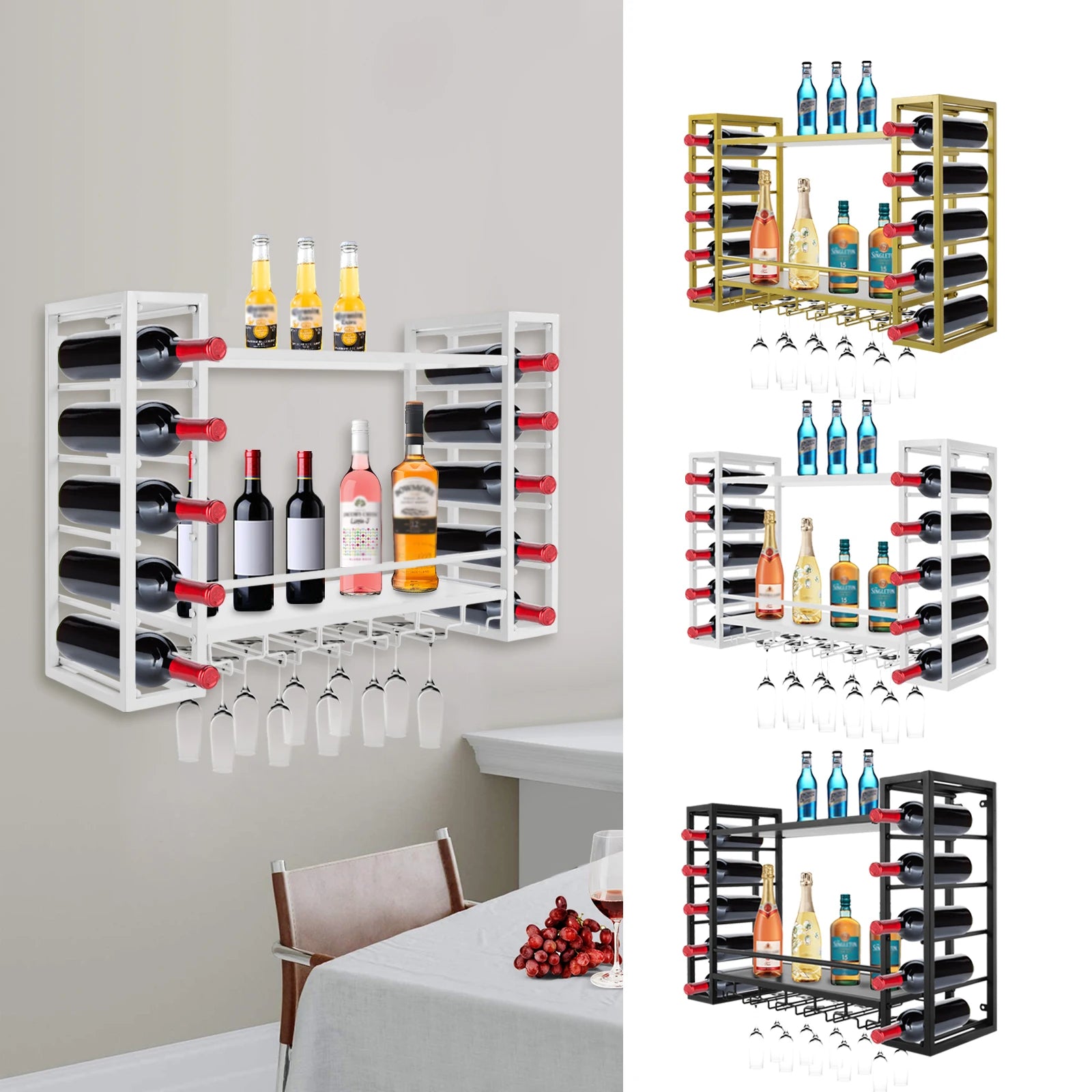 White/Black/Gold Wall Mounted Wine Rack Wine Storage Display Shelf Hanging Wall Bar Shelf
