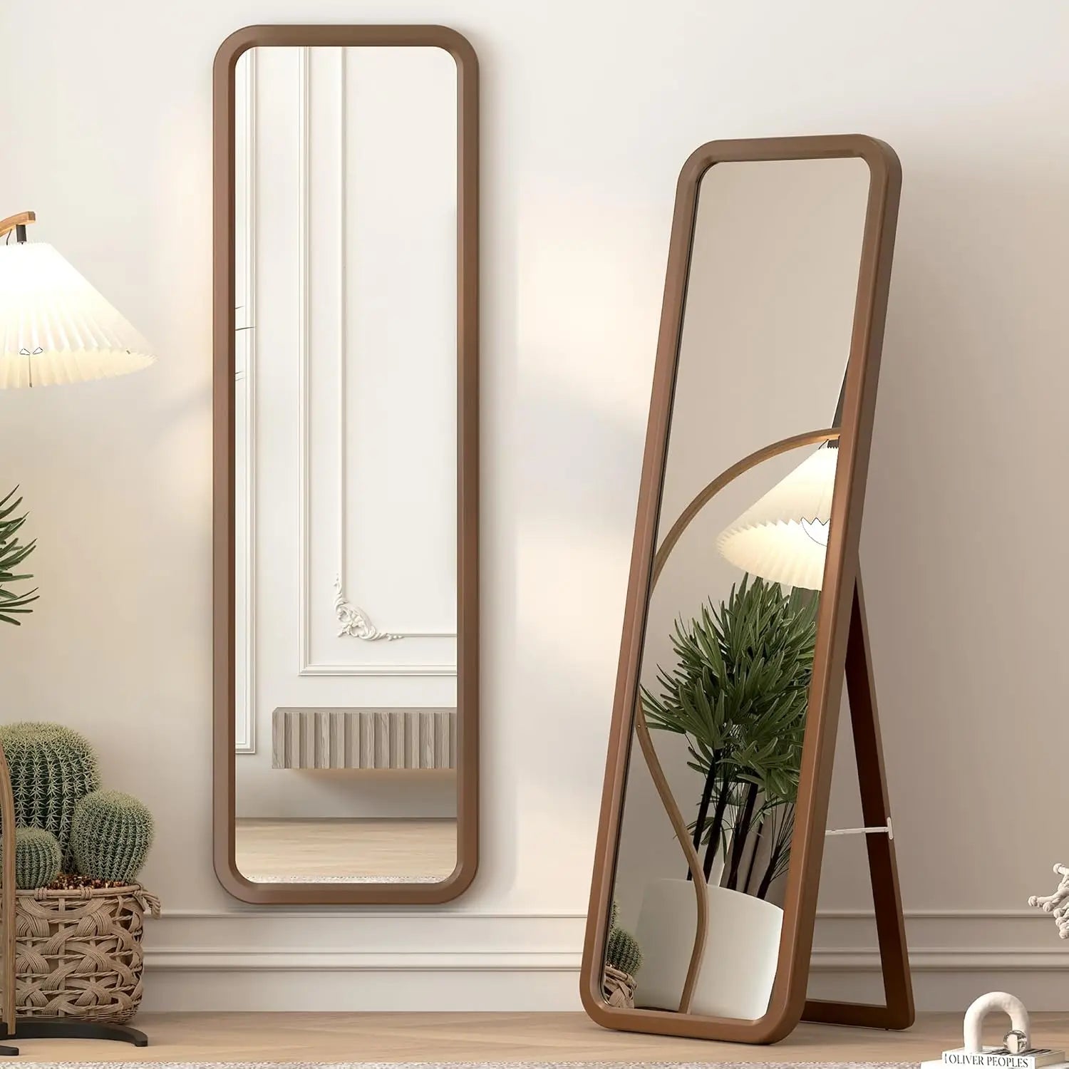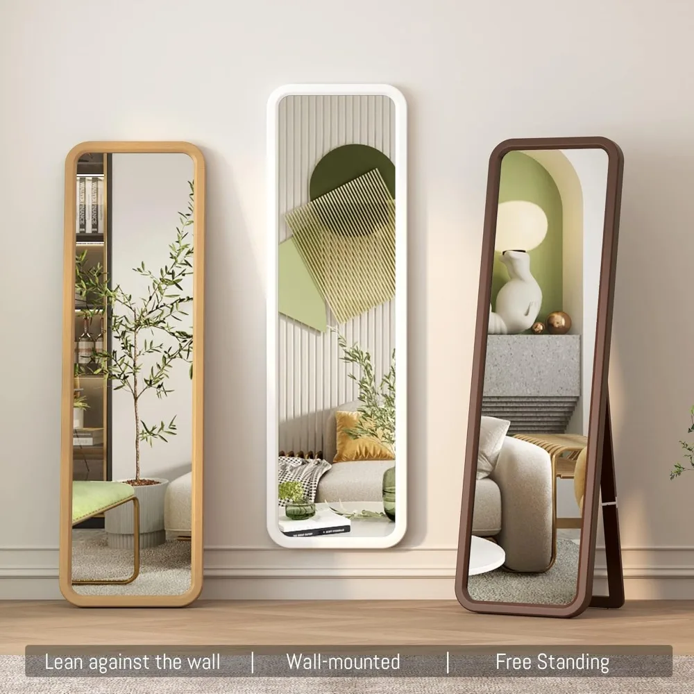Wooden full-length mirror, 63 "18" floor or wall mounted, solid wood frame with rounded corners, bedroom vanity mirror